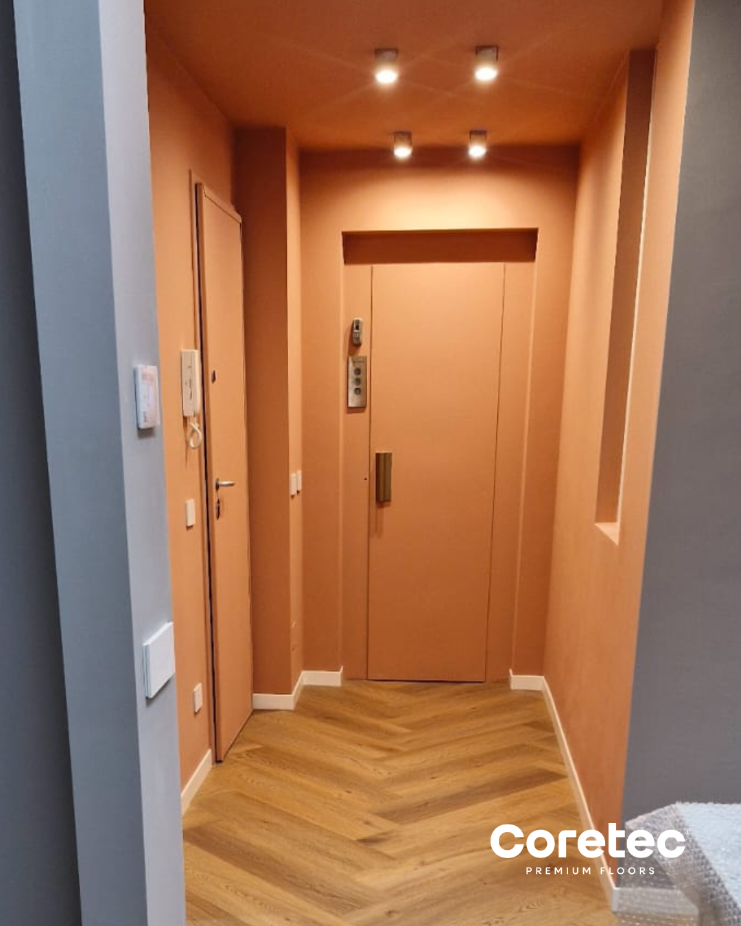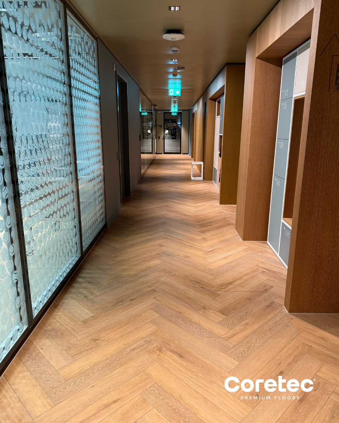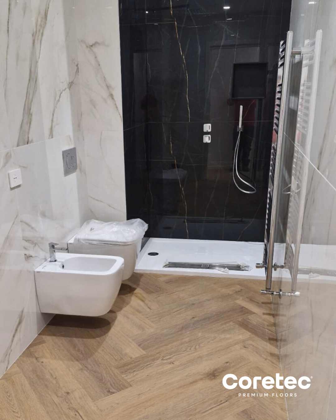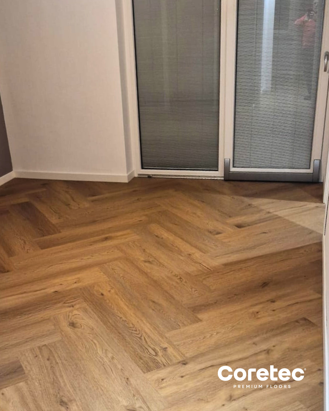 Il pavimento flottante per interni Coretec® è particolarmente indicato per la posa a spina di pesce italiana grazie al sistema ad incastro, che consente di posizionare le doghe in modo rapido e preciso. Questa soluzione permette l’installazione anche sopra pavimentazioni esistenti, evitando demolizioni, smaltimenti e interventi invasivi.